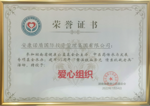 ▲安康諾盾集團被評為“愛心組織”
